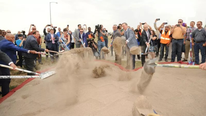 Colorado Governor John Hickenlooper and Denver Mayor Michael Hancock were among the dignitaries who took part in the Central 70 project groundbreaking on August 3.
