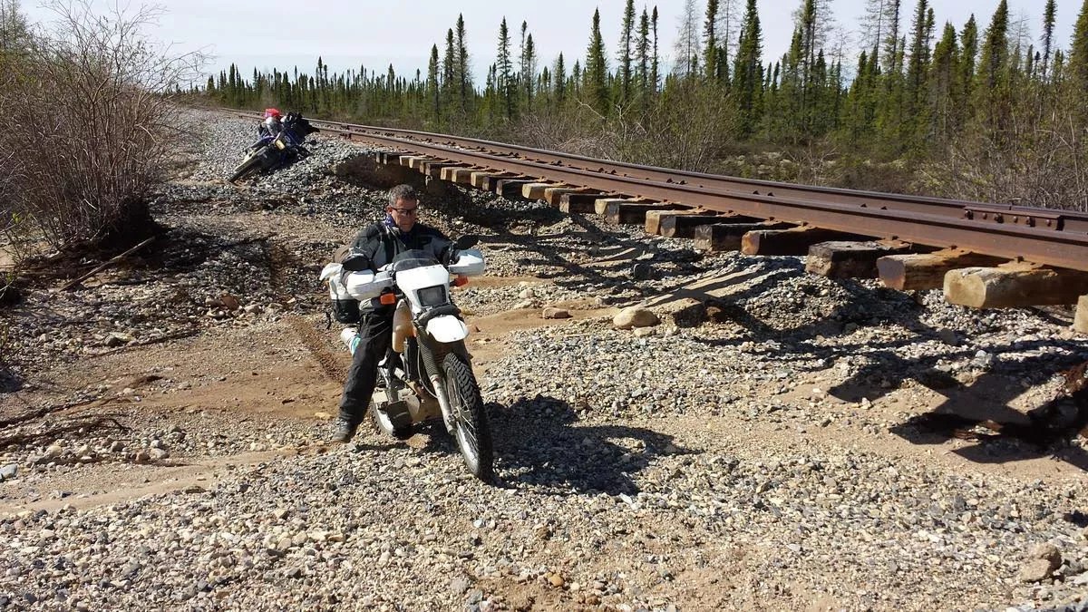 And in June, Golden resident Steve Green and his friend Richard Whittaker hopped on their motorcycles bound for Churchill and saw the damage for themselves. They rode the tracks all the way into town, surprising residents who had been led to believe that the tracks were under water and couldn’t be navigated. “They were fooled by OmniTRAX, but we drove up the tracks and they weren’t under water,” says Green, who measured the places where the track was washed out and determined it was just 860 feet; the bridges were fine, he says. “I’m just surprised they can’t get the dang track going without having to go with this deluxe track.”