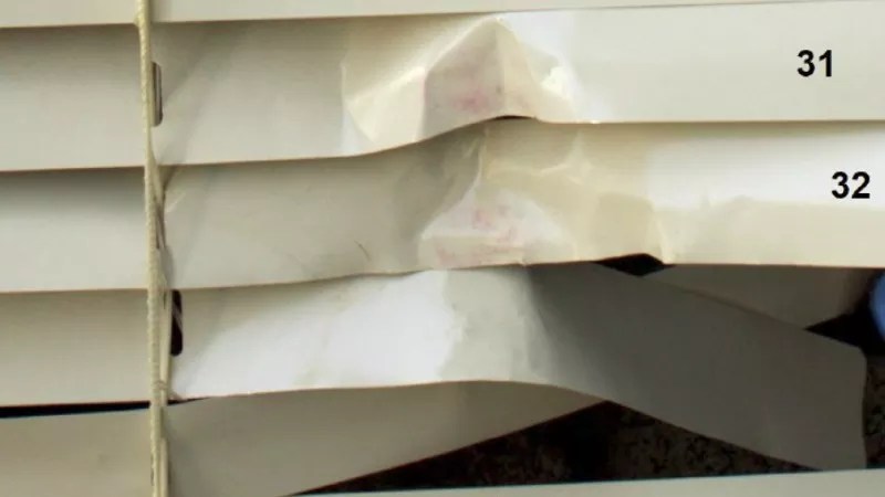 A close-up look at the bullet points in the blinds in Cole Stewart’s Boulder apartment.