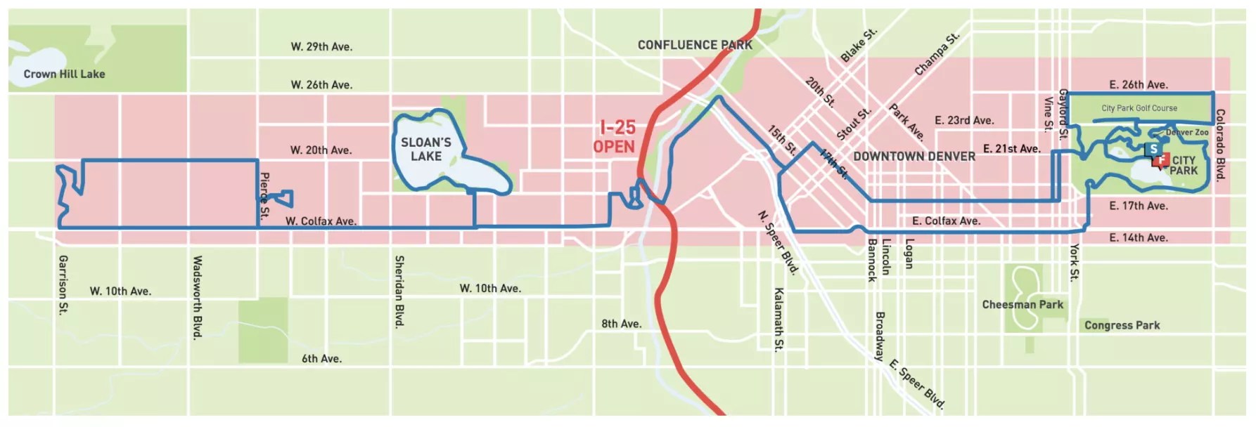 If you’re traveling east or west, stay south of Colfax from 14th Avenue on – or if you’re north of Colfax, take 30th Avenue or above.