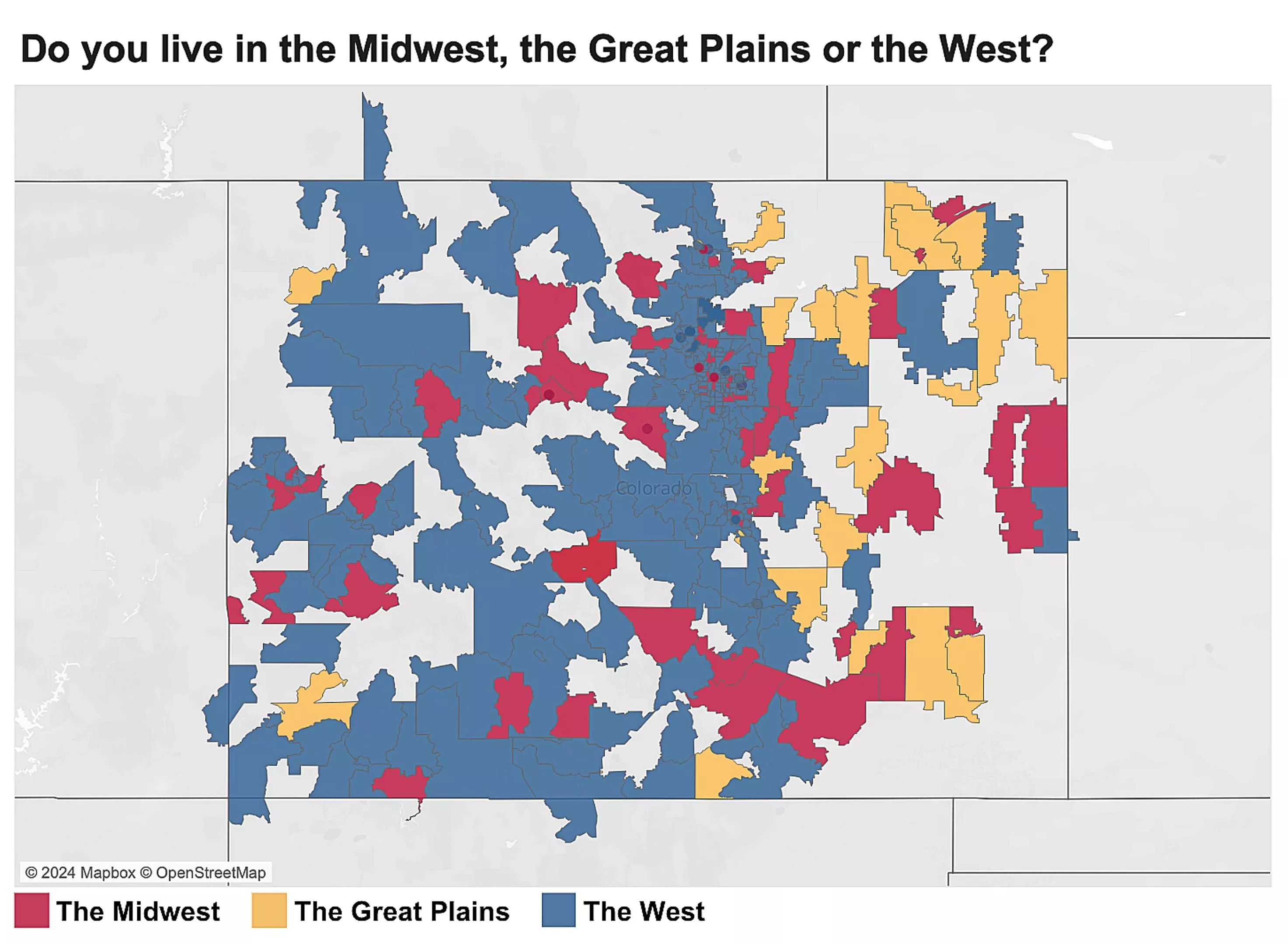 The collective confoundment convinced the pollsters to take a closer look. In late January, the Middle West Review journal and Emerson College Polling asked 2,000 Coloradans whether they live in the Midwest, the Great Plains or the West, expanding the sample size and providing more options to choose from. Now, the results are in.