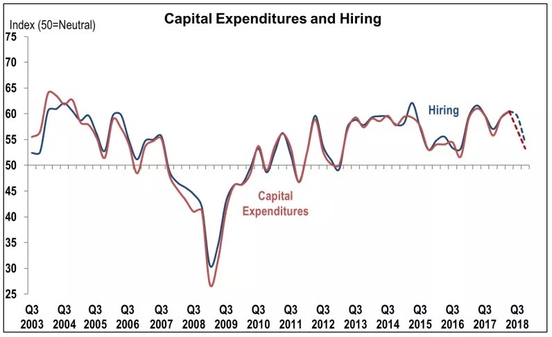 Additionally, Wobbekind goes on, “there was a two-and-a-half-point drop in confidence about industry profits. And those things may be linked. If expectations for industry sales and profits decline, that may be why some of the companies are less optimistic about doing capital expenditures.”