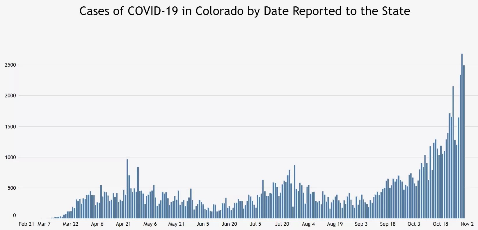 Here are the figures in major categories as updated by the CDPHE at 4 p.m. yesterday, November 1:
