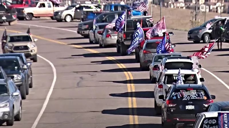 Such warnings didn’t prevent Bandimere Speedway – whose Fourth of July fireworks show and September COVID-Chaos get-together largely eschewed mask use and social distancing (the track’s owners have filed a lawsuit against the state over its health orders) – from serving as the staging area for the MAGA Drag the Interstate event. Facial coverings and other safety protocols appear to have been rarities even before drivers hit the road. The result was essentially an enormous act of denial on wheels.