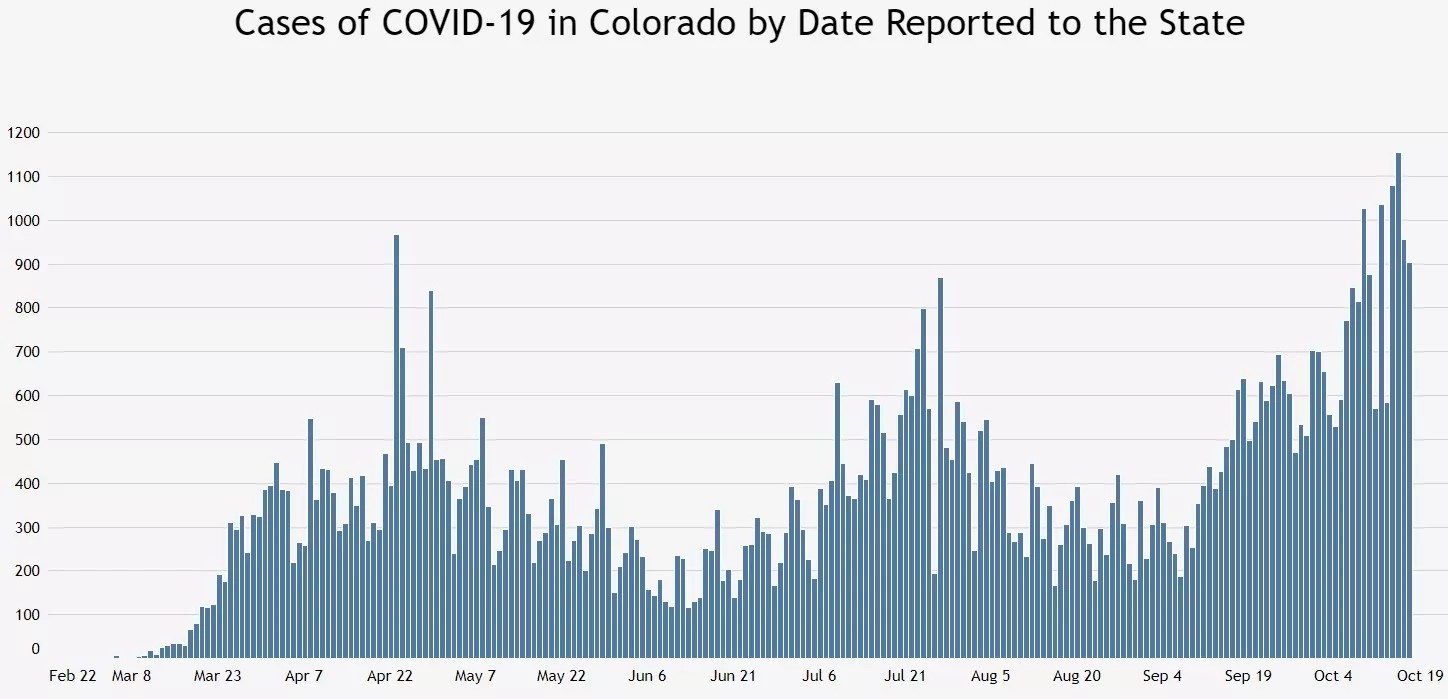 Each of these categories contains a shock. Cases up nearly 24,000 in five weeks. An even 1,000 more people hospitalized with the novel coronavirus over the same span. No county in Colorado spared. The number of patients dying with COVID up 63 in the past seven days, and fatalities specifically caused by the disease during that period rising by 44, making it the most deadly week in months. And the 82 additional outbreaks suggest that on October 21, when the next report is released, Colorado will set another ignominious record for the fourth week in a row.