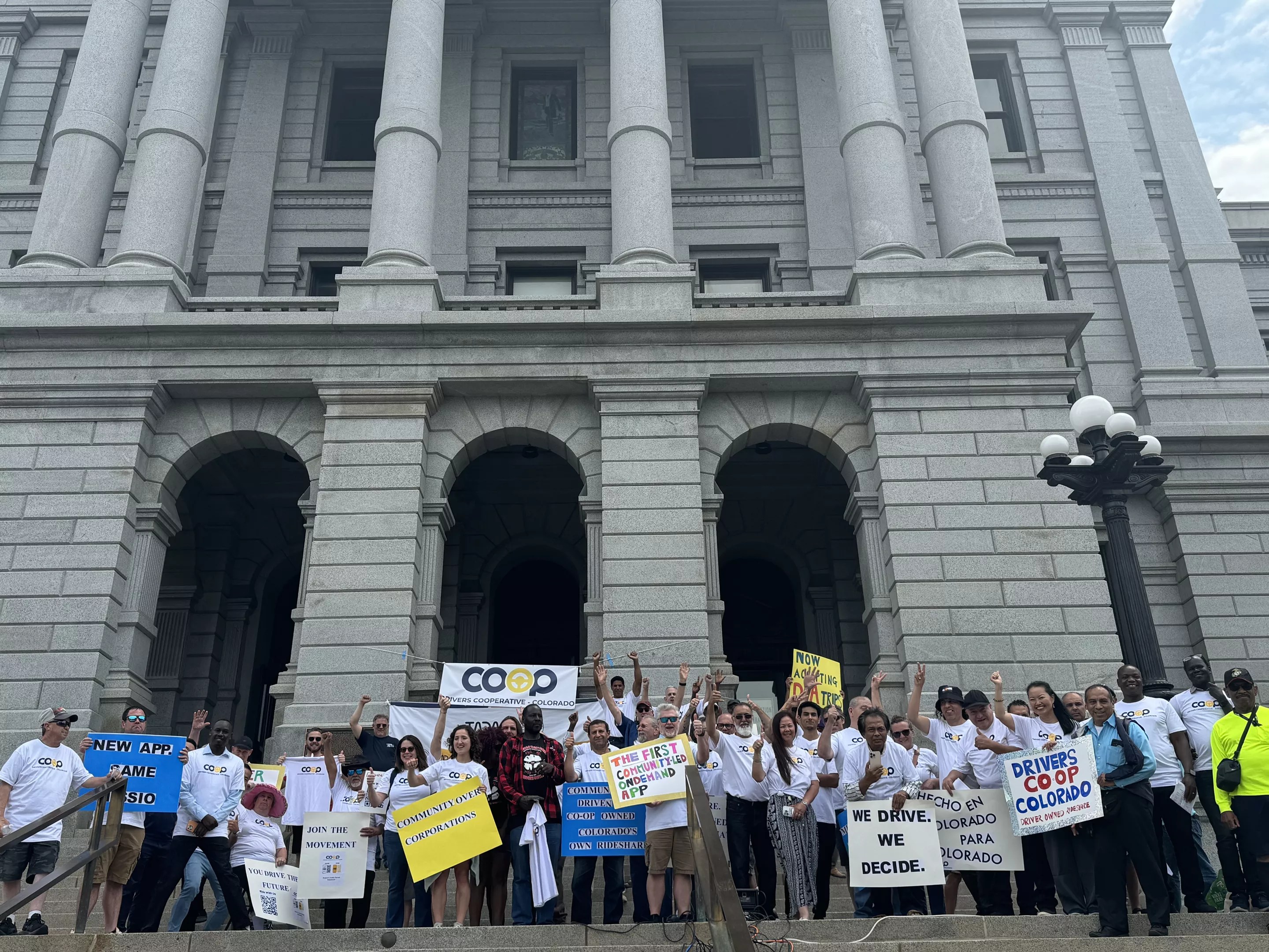 Drivers and workers celebrated the return of a sleeker, better employee-owned rideshare app at the Colorado State Capitol on July 16.