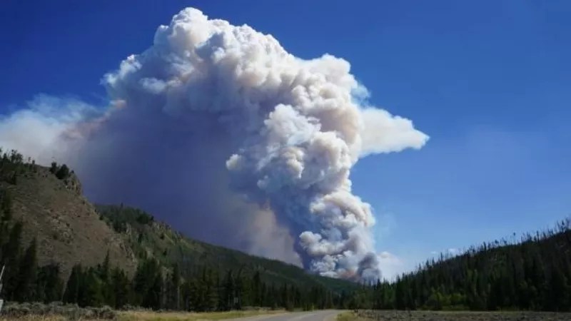 Current Situation: Extreme fire behavior overnight resulted in an increase in incident acreage of over 35,000 acres. Behavior included crown fire activity as well as long range spotting. an outflow boundary produced by showers near the Wyoming border moved southward over the fire area producing a rise in temperature from 78 to 90 degrees, wind gusts up to 40 miles per hour, and a rapid increase of fire activity. Pyrocumulus development occurred and resulted in cloud to ground lightning. The combination of extremely dry fuels, low relative humidity, high temperatures, and terrain driven winds may continue to create extreme fire behavior that is resistant to suppression efforts. There is potential for similar thunderstorm cells to pass over the fire area this evening.