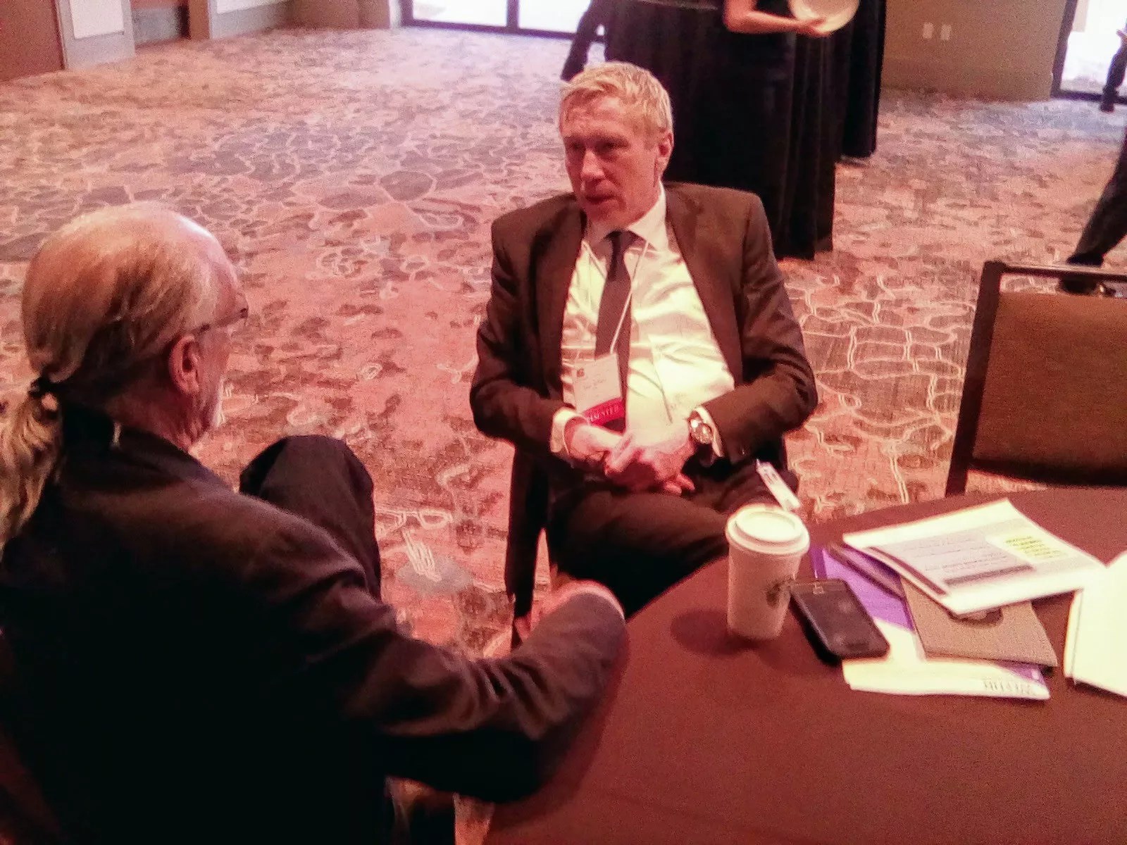 DOC executive director Dean Williams talking with Dr. Rollin Oden of the Stout Street Clinic at the forum.