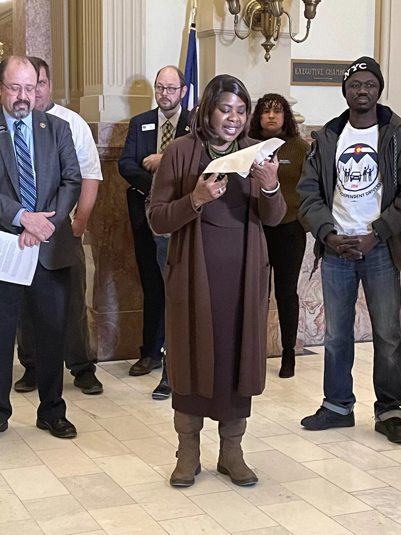“We’re concerned about this because, while they lowered our income, they also raised the prices for the consumers that we take to and from their places of work, their homes, to the airport or wherever they need to go,” Samuel Pena Perez, a rideshare driver, said at a rally announcing the legislation in the west foyer of the Colorado State Capitol building on January 30.