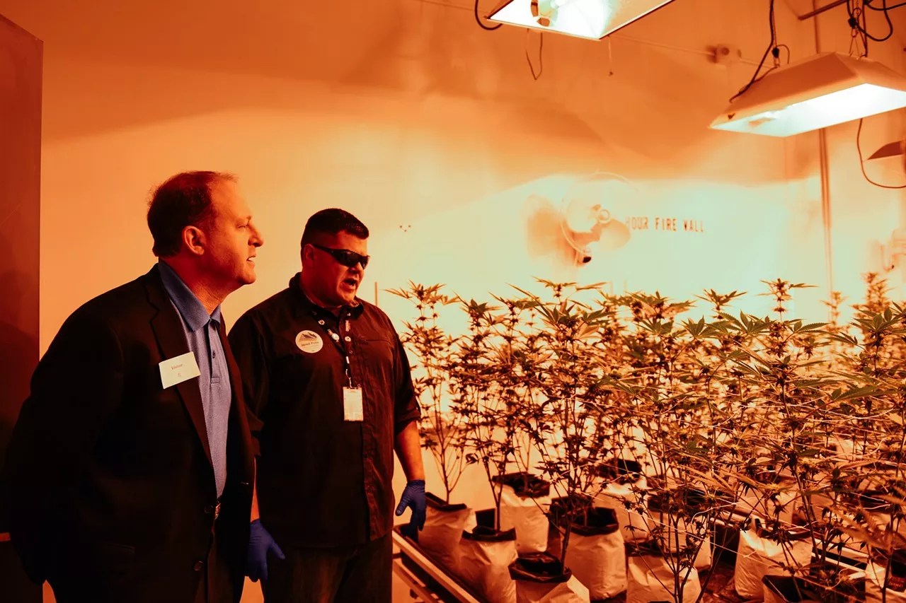 Congressman Jared Polis visits a legal marijuana cultivation on April 20, 2018.
