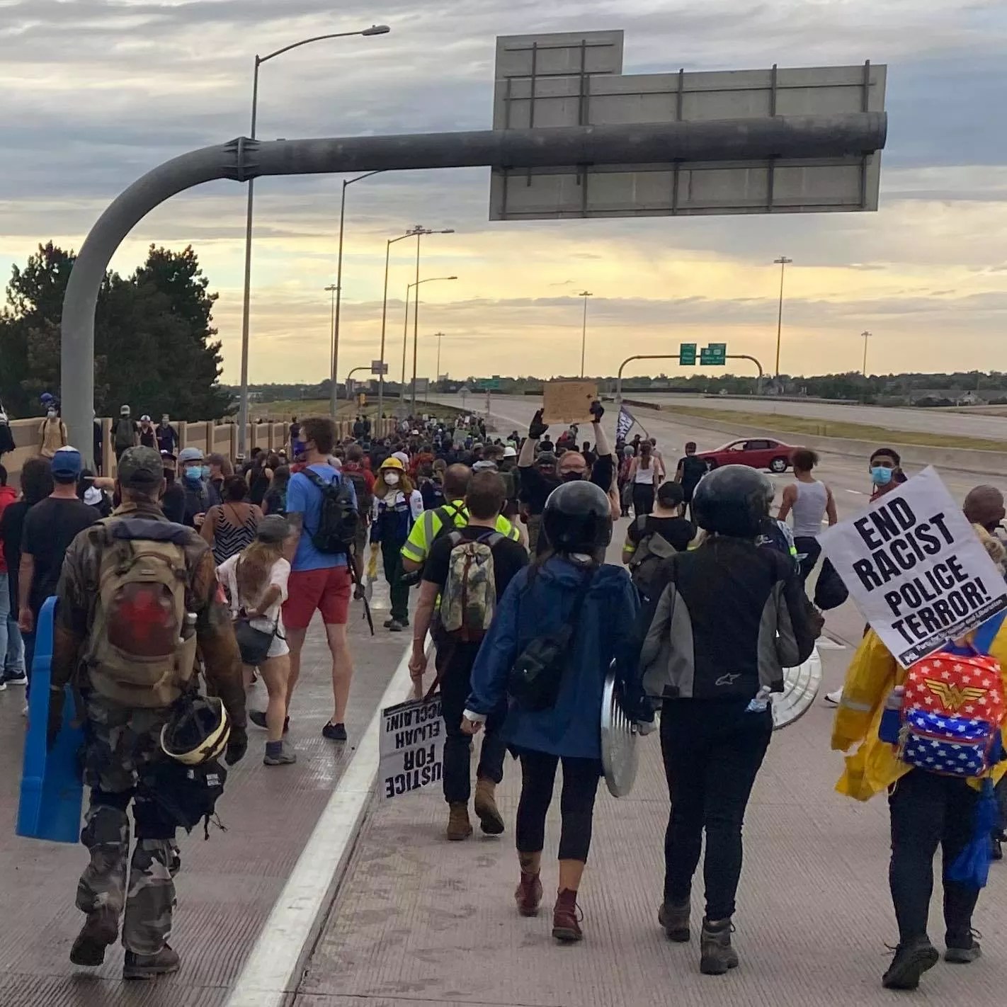 Protesters on I-225 on July 25, 2020.