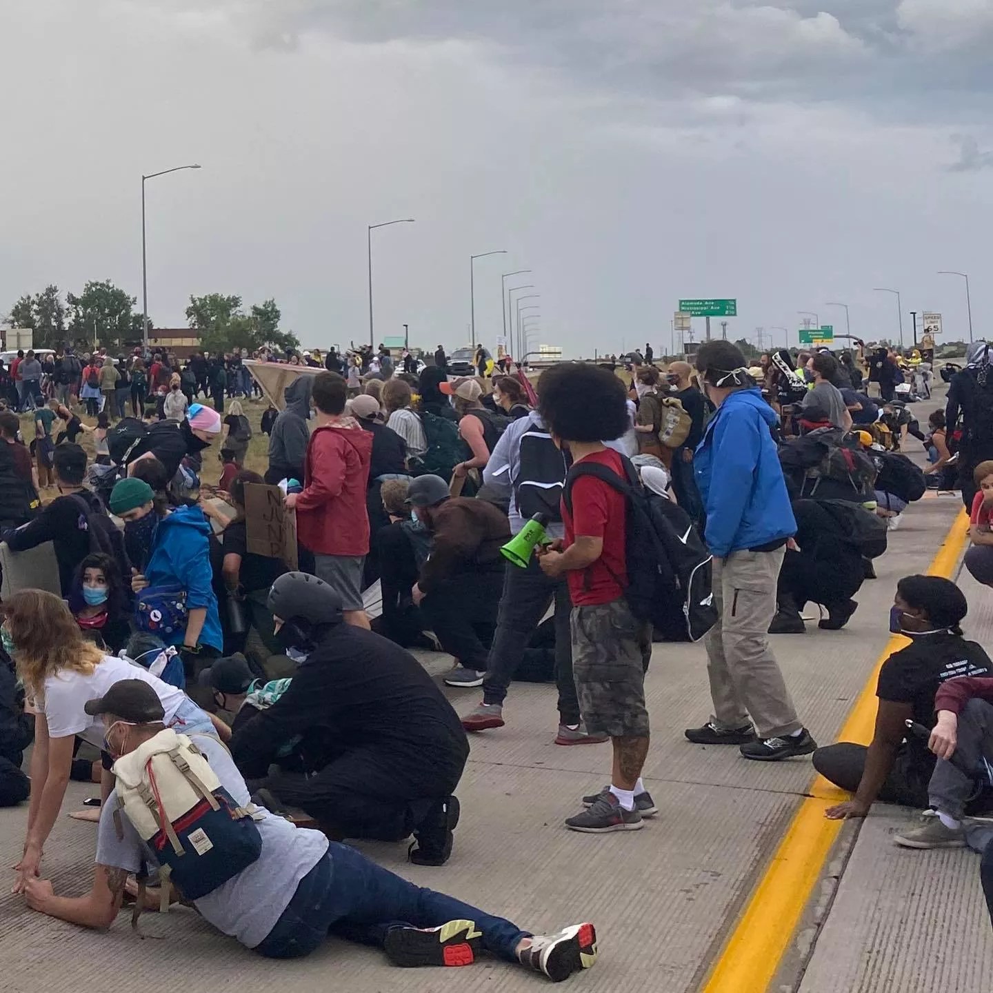 Protesters on I-225 on July 25, 2020.