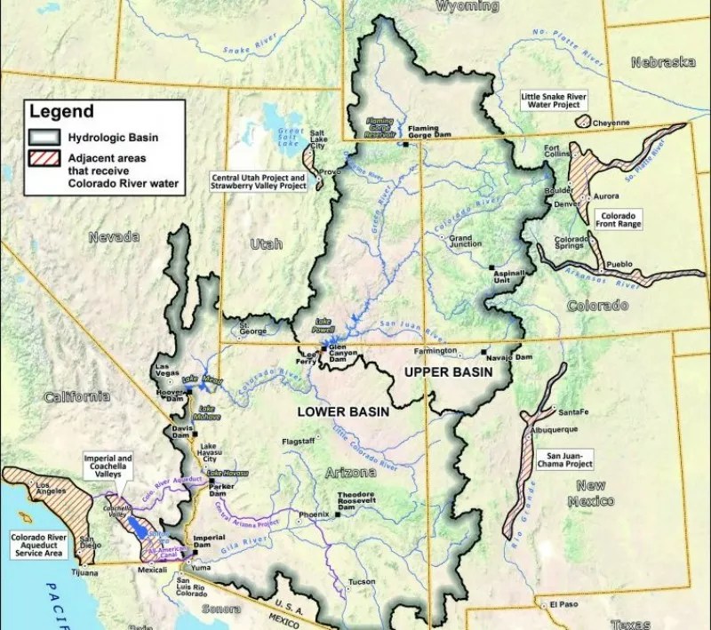 This map shows how vast are the upper and lower basins of the Colorado River.