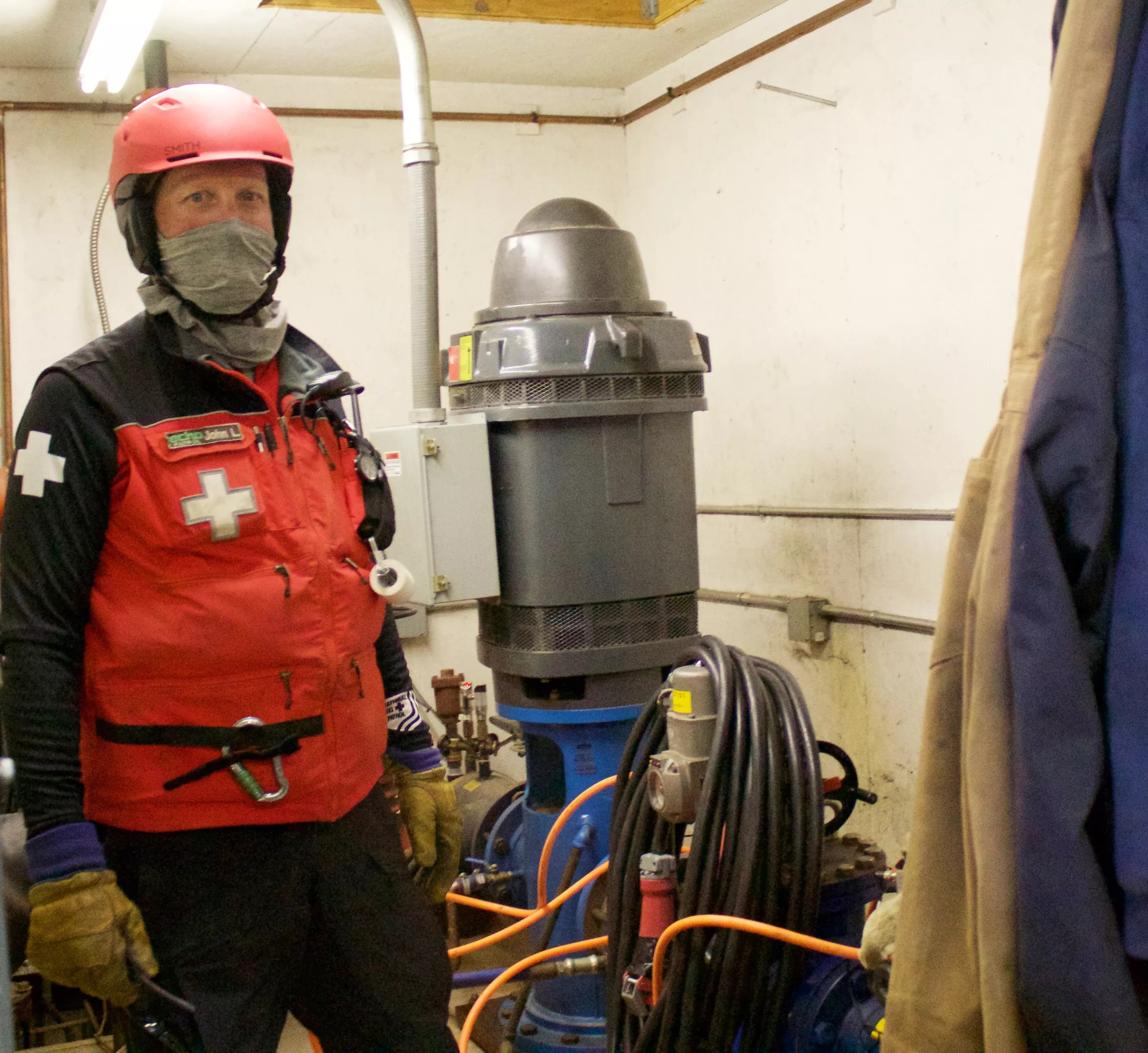 John Lock of Echo’s Ski Patrol compares the snowmaking equipment to a fire suppression system.