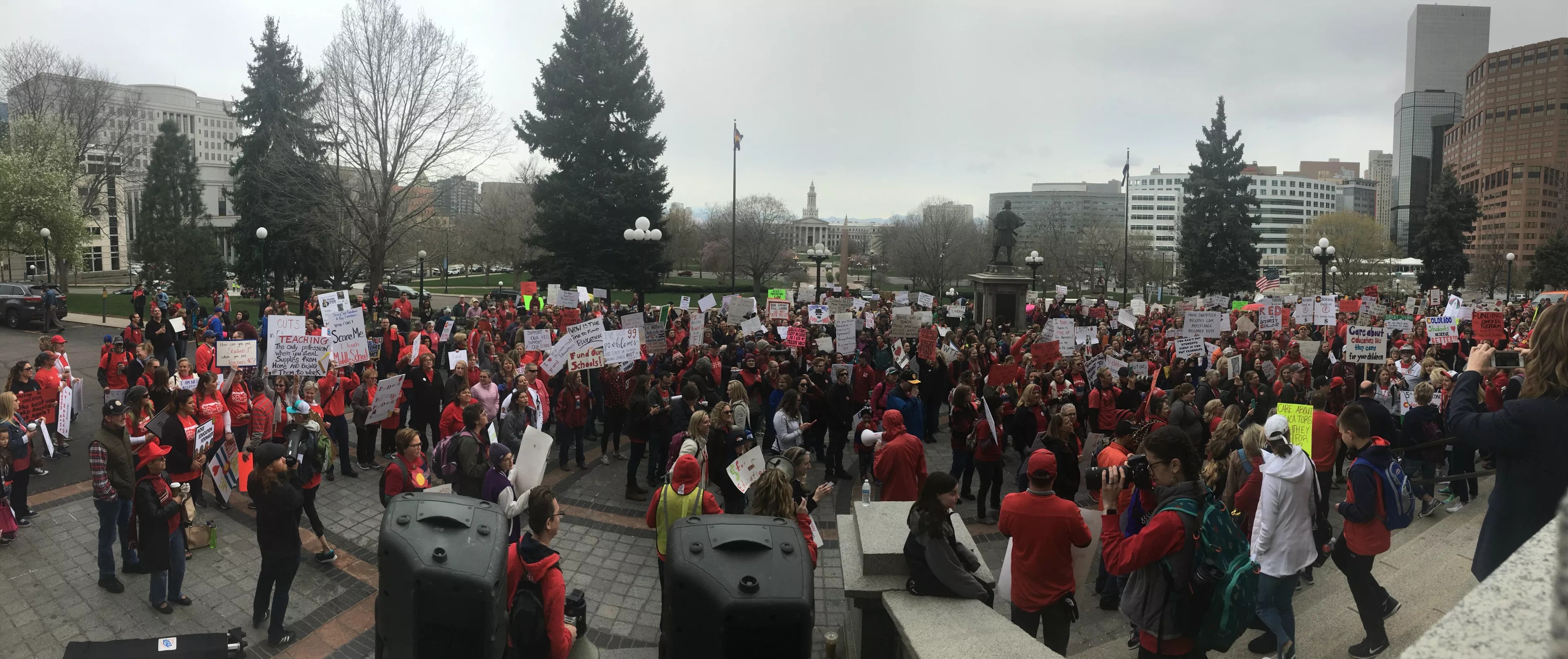 A panorama of the teacher protest at the Colorado State Capitol on April 26.