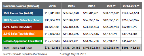 Colorado has collected more than $500 million in tax revenue from the cannabis industry since recreational sales began in 2014, according to a report from VS Strategies based on information from the Colorado Department of Revenue.