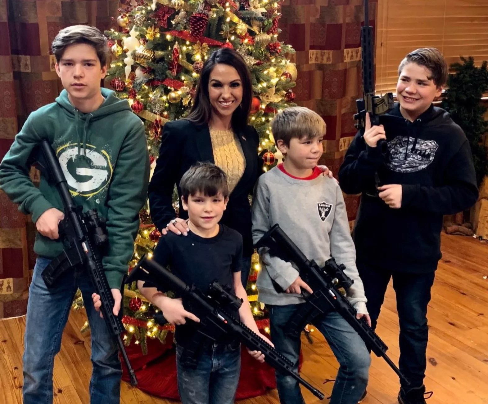 Representative Lauren Boebert recently posted a Christmas photo on Twitter in which she poses with her four sons, each of whom has a firearm. Aside from one boy wearing a Raiders sweatshirt, the picture was surprisingly unoriginal for a woman who’s become known nationally for her gun tirades, most notably her insistence on carrying a firearm in the halls of Congress and Zoom-calling into a session while displaying a gun shrine on the shelves behind her.