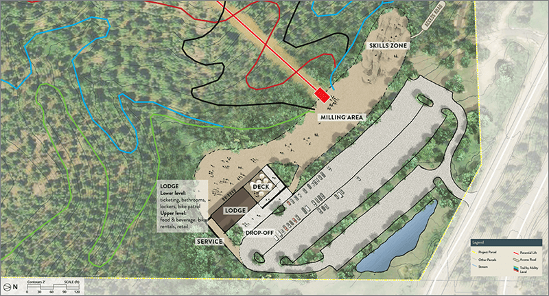 “That location just kept coming up as one where it made sense in terms of what they would like to leverage the property for, and it made sense to us for operational reasons,” Bouchard says of the State Land Board. Those reasons include location, topography and a lack of sun that will help keep the soil at proper moisture levels for mountain biking.