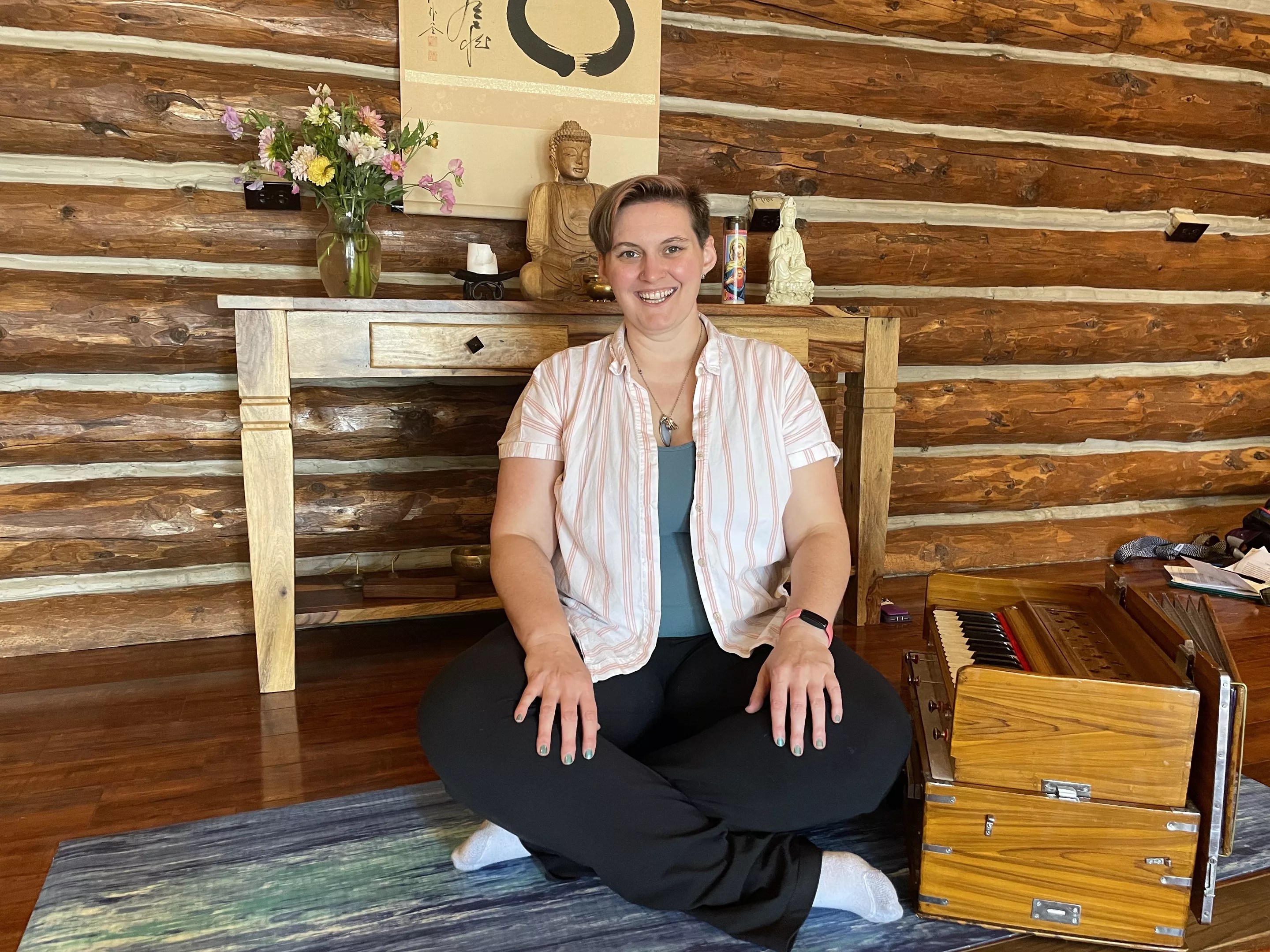 Finally, the group enters corpse pose as Wiley plays the harmonium, encouraging people to move and feel as their body tells them that they need to relax and reflect.