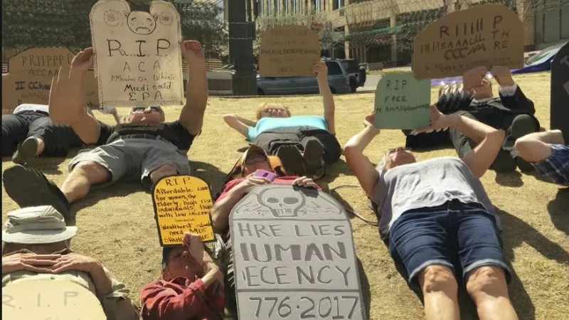 Starting about a month ago, Shumake and other Indivisible Denver members (the Facebook group has more than 5,000 members), launched the Sunday Gardner, and some of the demonstrations that followed have been elaborate. For one rally, he says, “we protested the attempted repeal of the Affordable Care Act with an old-fashioned die-in, where we came with cardboard tombstones and laid down in front of the building. Then we marched up the 16th Street Mall and died on the steps of the Capitol.”