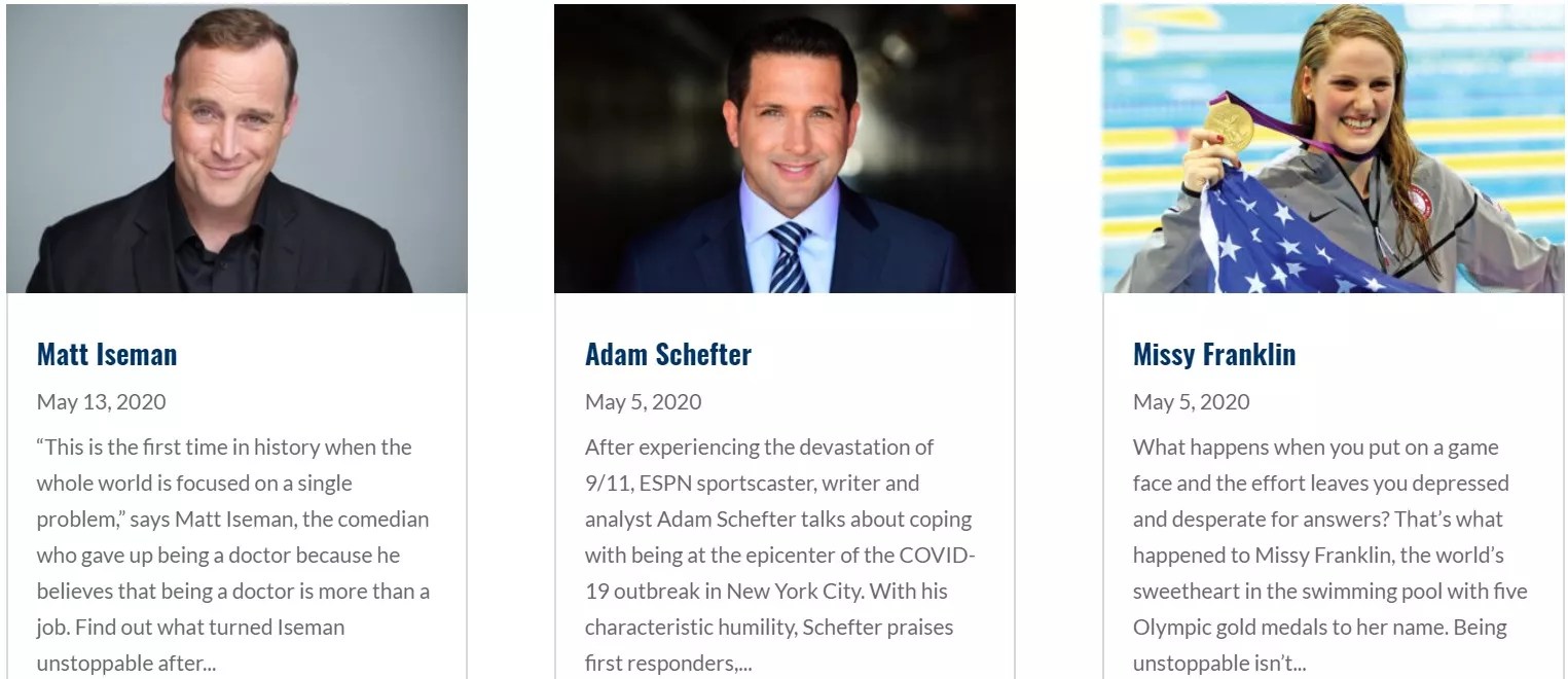 Early episodes of We Are Unstoppable feature conversations with Matt Iseman, Adam Schefter and Missy Franklin.
