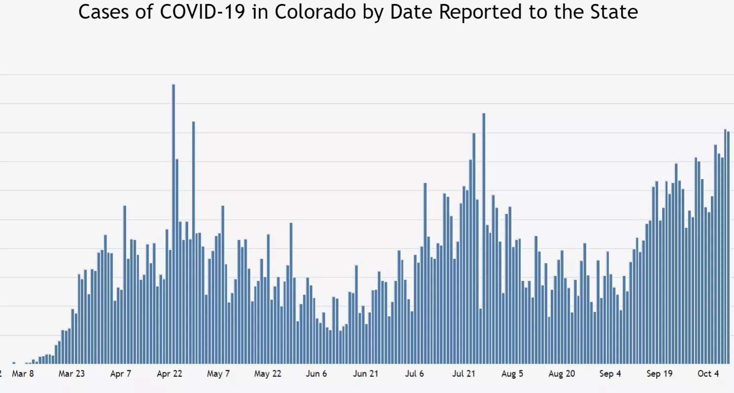 If there’s one light in the darkness, it’s that deaths from COVID-19 aren’t growing at the same pace. The CDPHE confirms eight deaths on September 30 and seven on October 2 – among the higher recent totals but a far cry from April, when the state logged more than thirty deaths on multiple days.