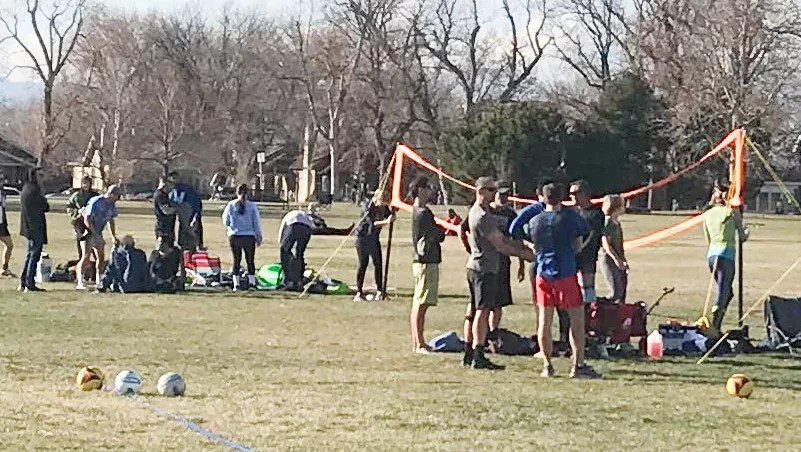Either these folks didn’t hear what Polis and Hancock had to say…or they didn’t care. But in any event, wearing masks outside in Denver doesn’t seem likely to become a universal practice, no matter what color level the city has reached.