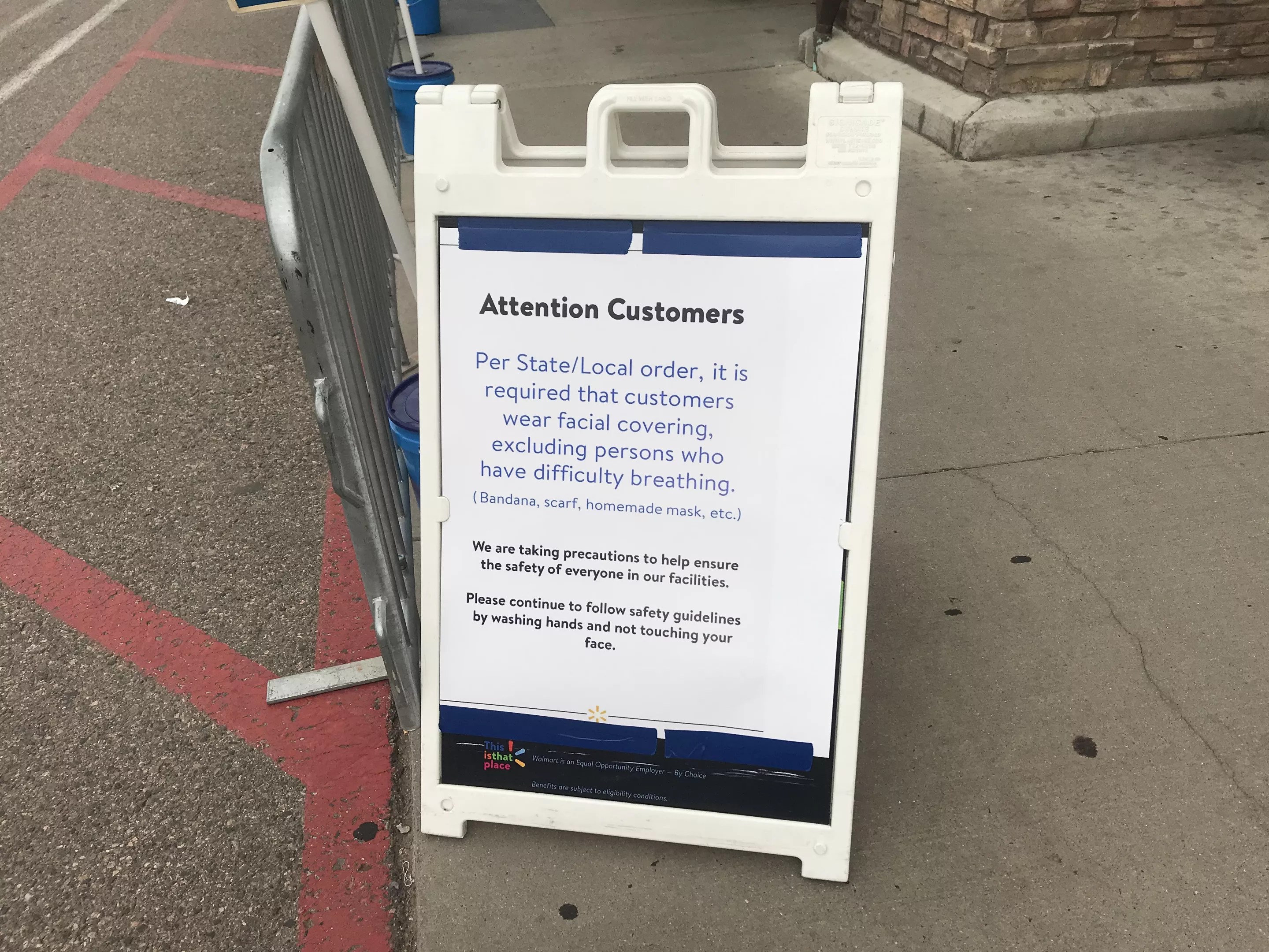 But if I was persona non grata, can you guess who wasn’t? Dozens of unmasked customers at the Walmart at 6675 Business Center Drive in Highlands Ranch, which we stopped by immediately after our meander through the Aurora store. They were admitted despite a sign at the entrance warning that “per state/local order, it is required that customers wear facial covering, excluding persons who have difficulty breathing.”