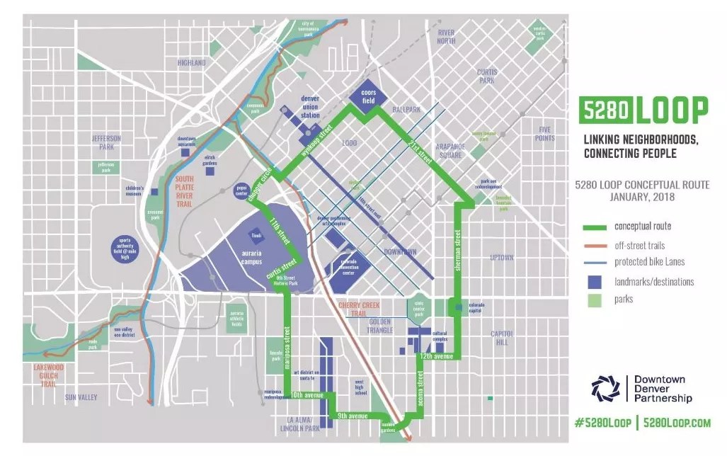 A map of the 5280 Trail, also known as the 5280 Loop.