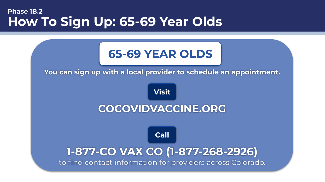 In all, Sherman estimated, Colorado will receive at least 452,000 doses by March 1 – an amount that officials believe will allow them to reach their goal of vaccinating 70 percent of individuals age seventy and above (the 562,000 people in Phase 1B-1), even as the state expands access to educators and the 65-69 crowd.