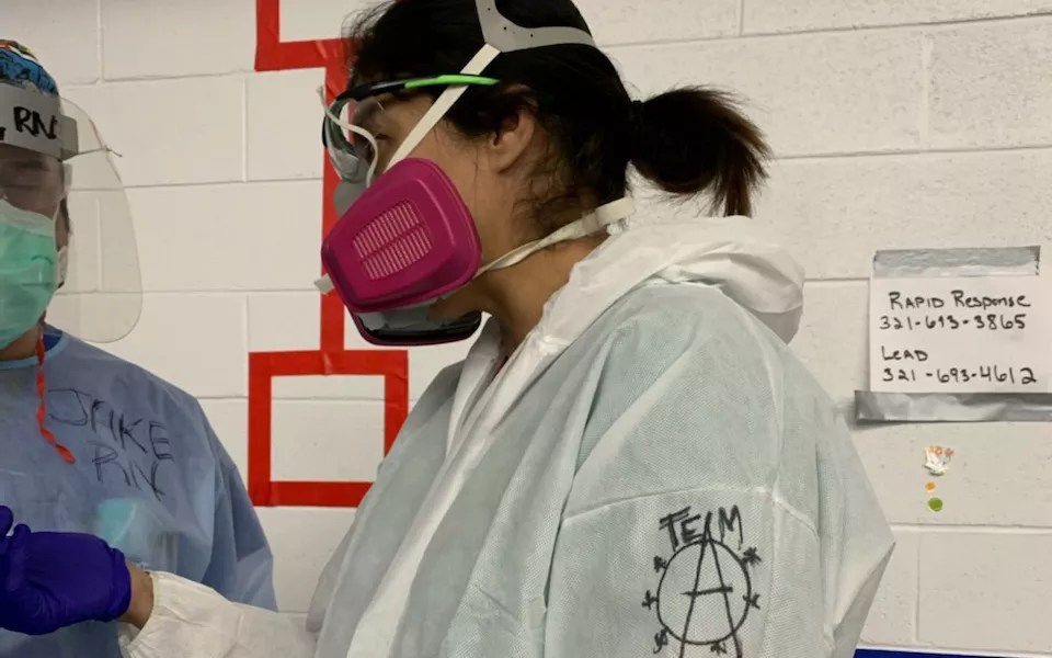 I want you to wear one of those N95 masks with another mask over it, with a face shield, plus the gown, and don’t eat or drink anything for twelve hours straight to not break your PPE.