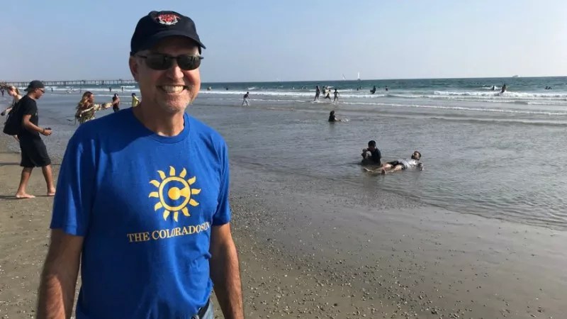 Larry Ryckman, an editor at the Colorado Sun, showing off his company spirit.