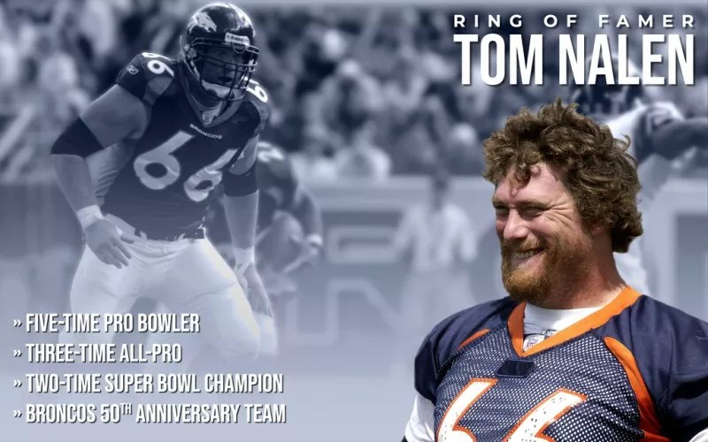 A graphic celebrating Tom Nalen’s induction into the Denver Broncos Ring of Fame offers a look at what he describes as his “crazy long hair.”