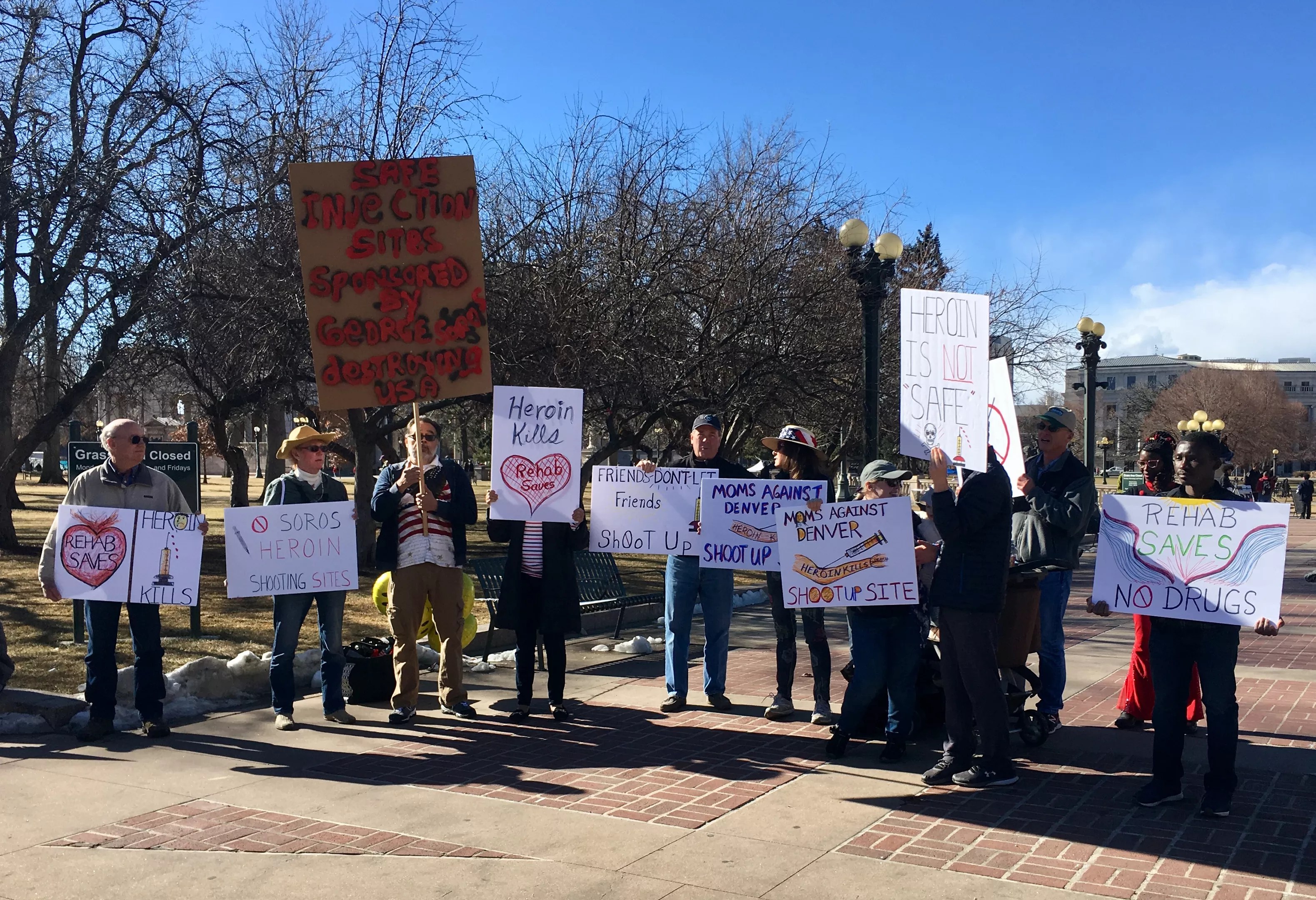 A bill that would allow supervised use sites in Colorado hasn’t yet been introduced at the Statehouse, but opponents are already starting to pressure their local lawmakers and holding rallies to protest such a measure. One such event took place by the end of the Martin Luther King Jr. Marade today, January 21, in Civic Center Park. The demonstration was organized by Get Er Done Right Colorado, whose mission, according to its backers’ business cards, is “to get Unaffiliates, Republicans, Conservatives, even Democrats, involved in winning our great state back to its western values.”