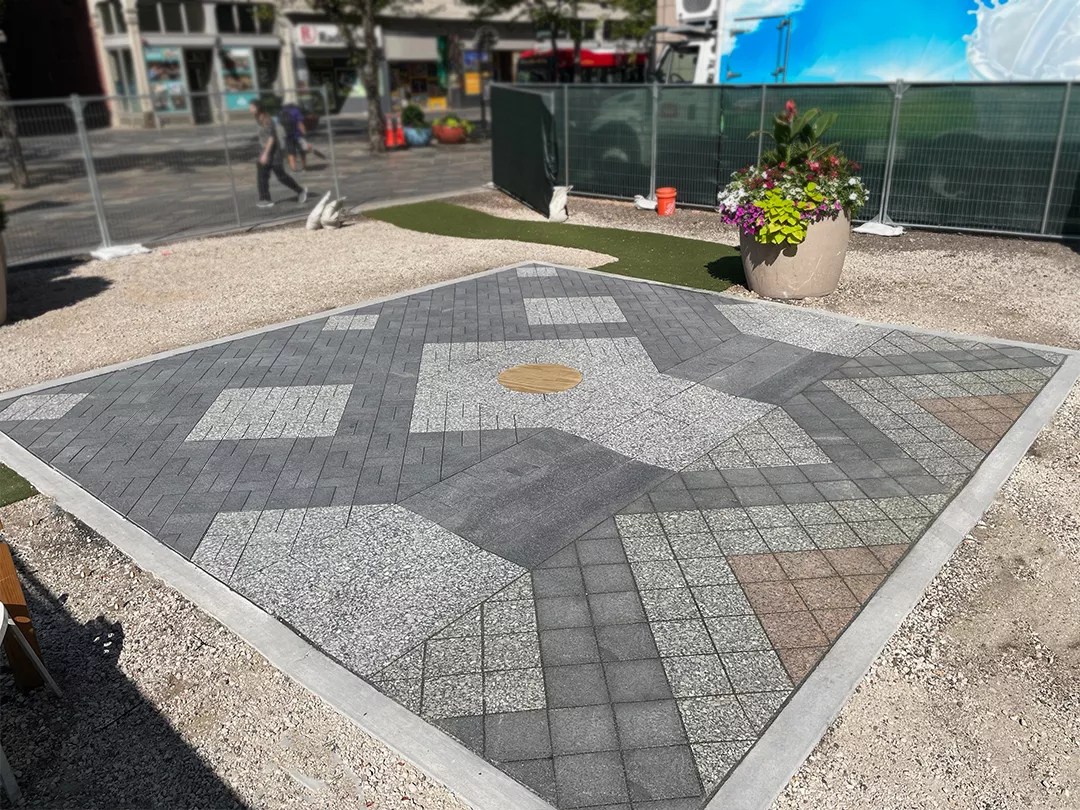 “The idea is you can see, feel, experience it,” Nancy Kuhn, a spokesperson for the Denver Department of Transportation and Infrastructure, said on August 17, at the opening of an exhibit that previews the pavement of the future 16th Street Mall. The display, which is located at Welton and 16th street, will remain open to the public for the duration of the construction project, which began in April.