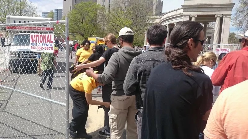 As 4:20 p.m. drew ever closer, plenty of folks got sick of being on the outside looking in. They eventually broke through the fencing along Broadway. Here’s a video showing throngs rushing onto the grounds.