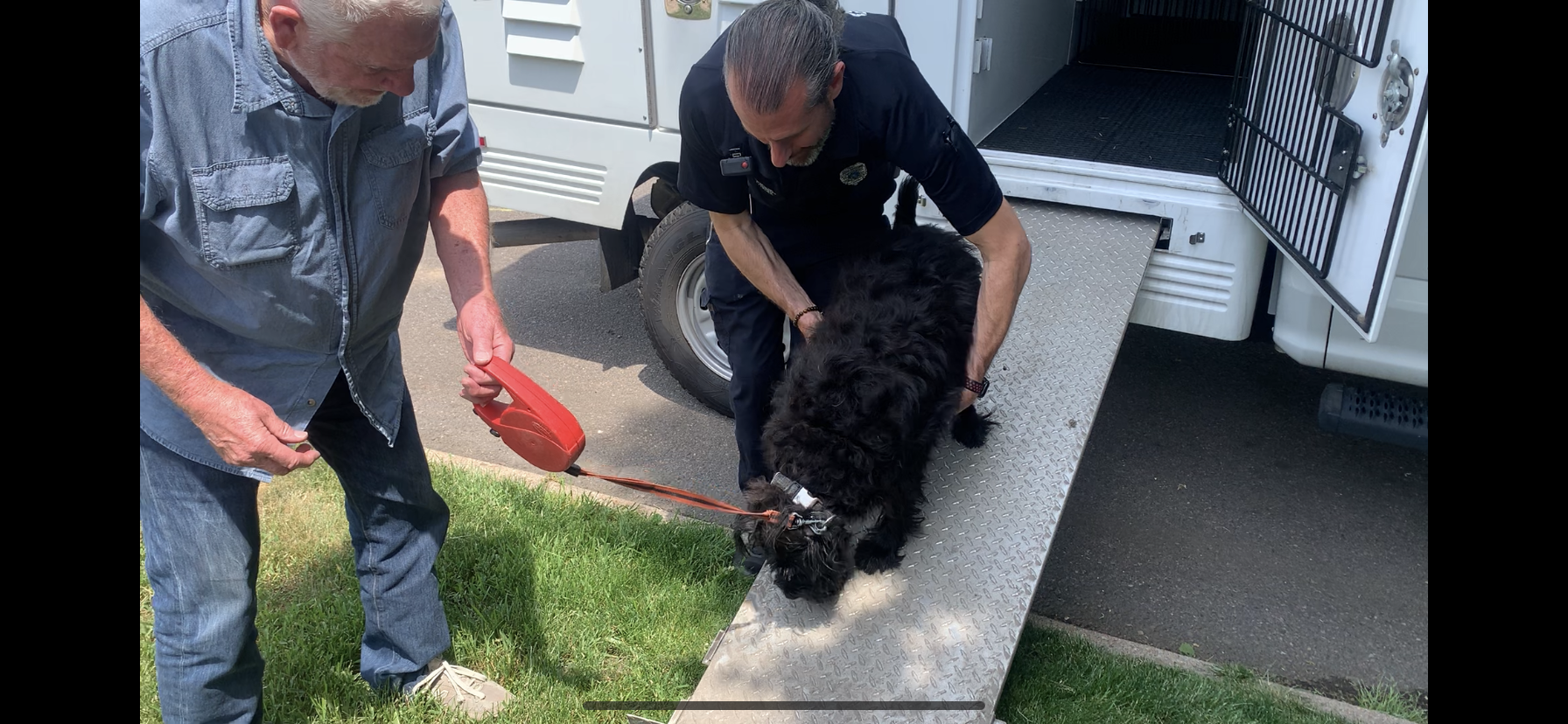 Ettinger snaps a selfie with the dog in front of the lost-dog poster, then gives the animal back to the owner.