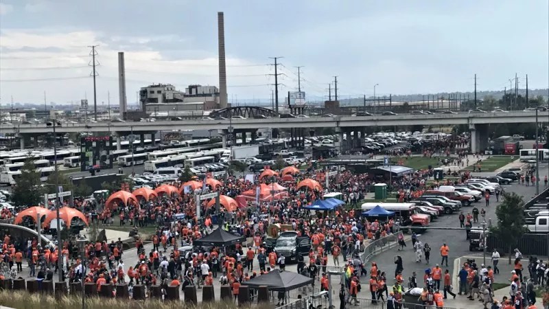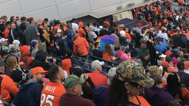 As we noted in our post about the top tweets tweaking Cowboys fans after Denver dismantled Dallas 42-17, the stands at Mile High Stadium definitely weren’t pure orange during the game yesterday, September 17. Cowboys boosters in the thousands turned out to witness their heroes get their ten-gallon hats handed to them by an inspired Broncos defense that rendered star running back Ezekiel Elliott impotent and a Trevor Siemian-led offense whose efficiency and effectiveness definitely raised expectations for the still-young season. The photos shared here, mostly captured by Lora Roberts, my daughter, provide a Snapchat-story-like look at the thrilling scene.