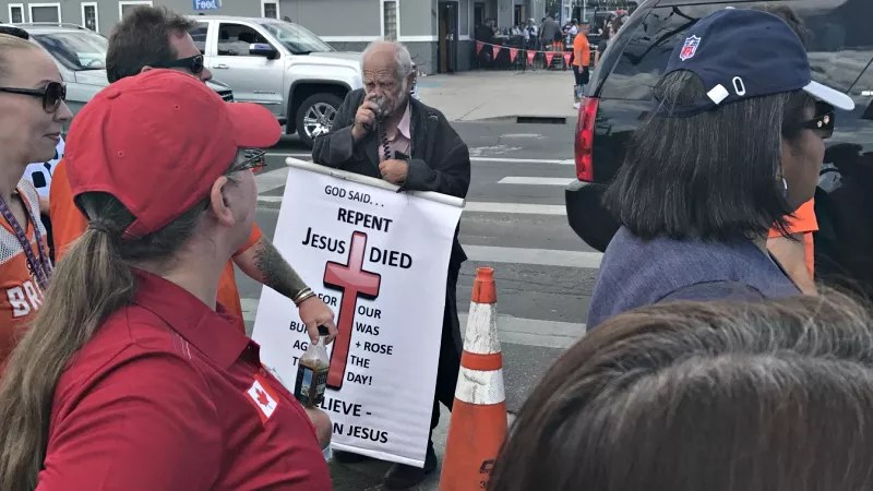 Folks entering the stadium were advised to repent. No doubt Broncos fans felt Cowboys supporters needed to repent more….