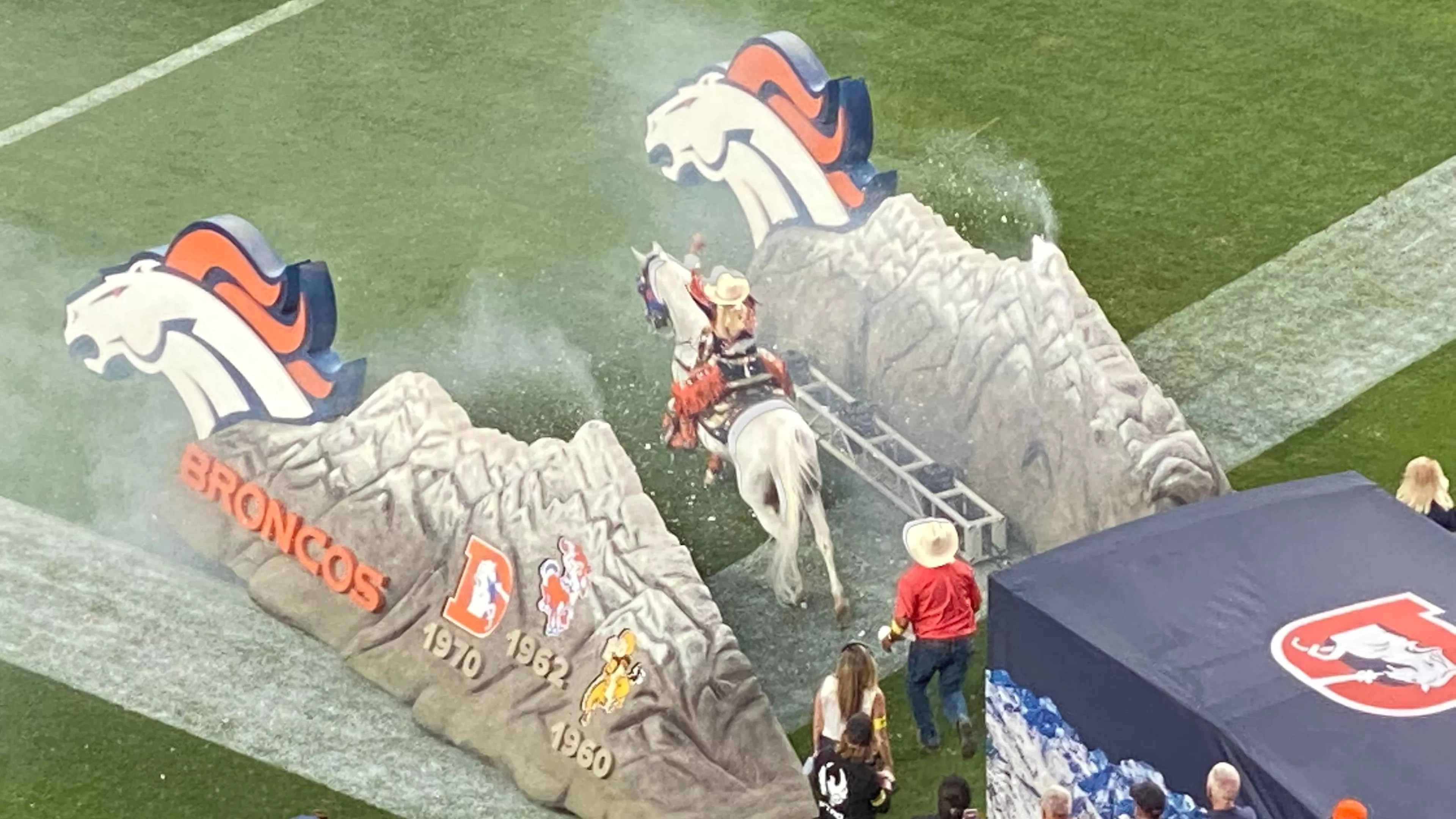 Thunder leading the team onto the Empower Field at Mile High turf for the first time in 2022.