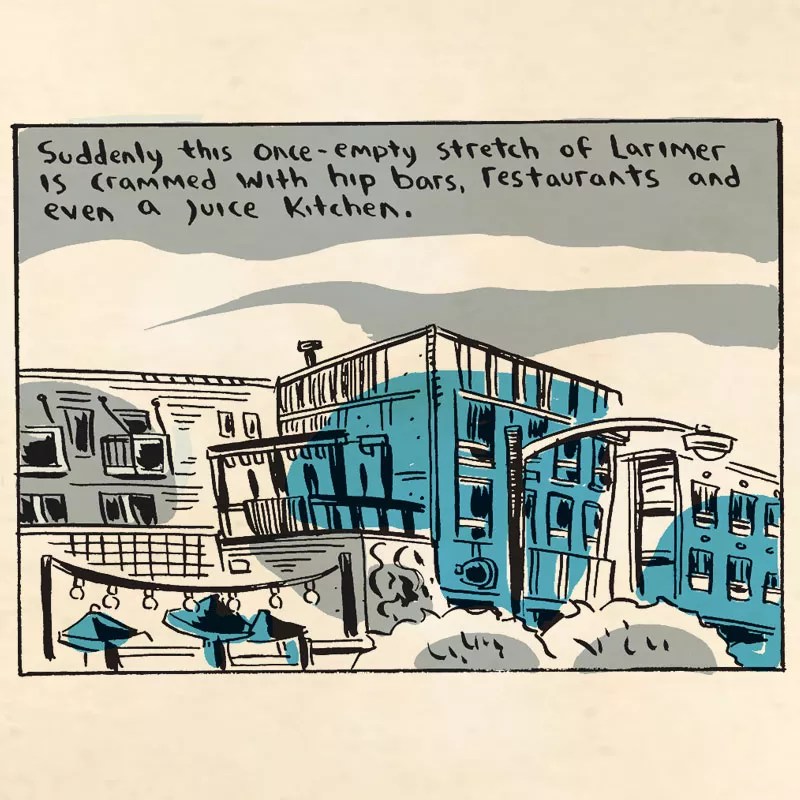 Denver is changing, and perhaps no stretch is changing as fast as the upper end of Larimer Street in Five Points. Once an area filled with vacant lots and dusty warehouses, today it’s bursting with massive retail/residential complexes filled with hip restaurants and bars and tenants paying big rents.