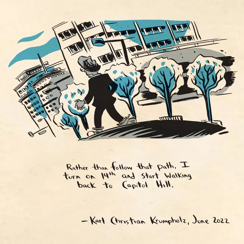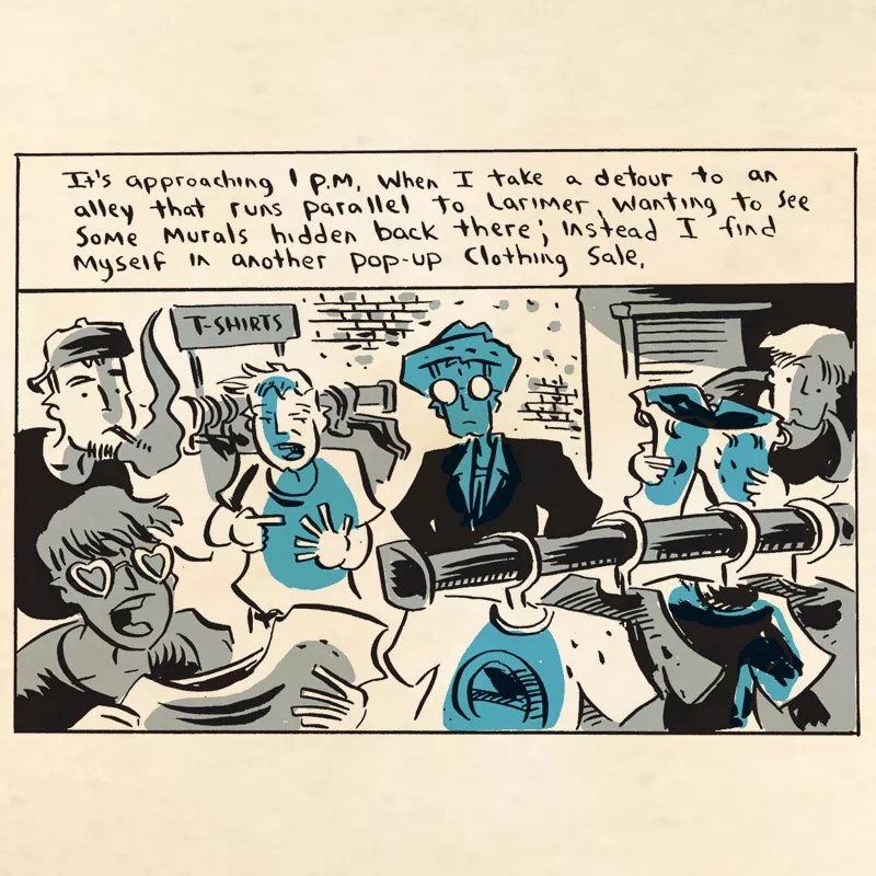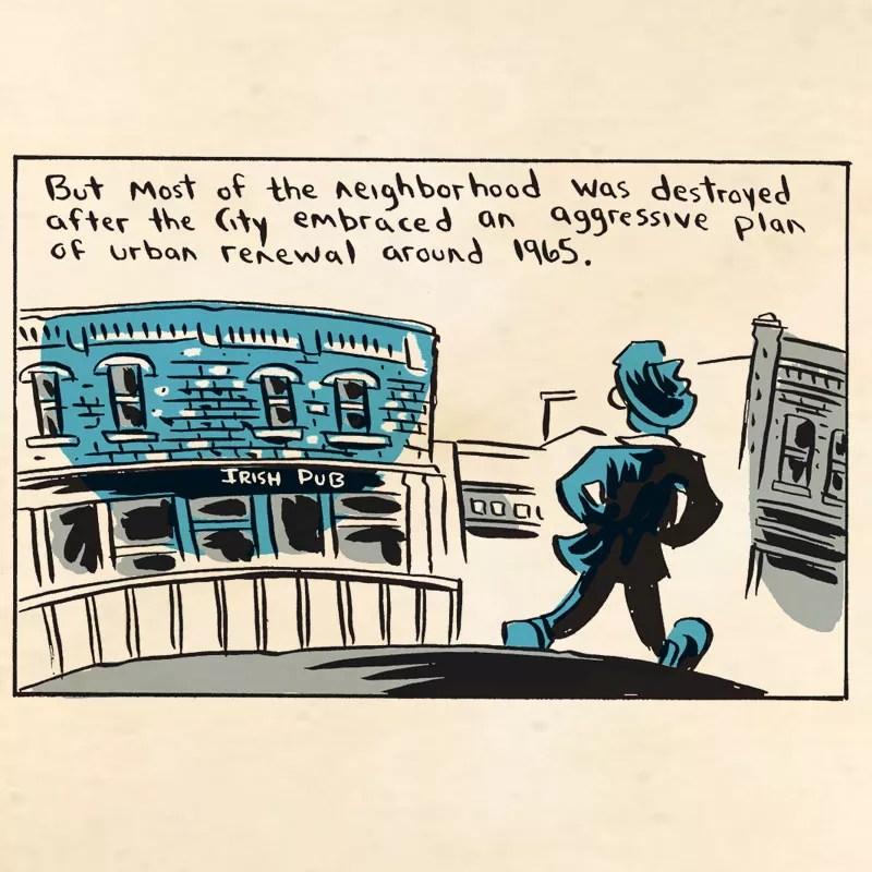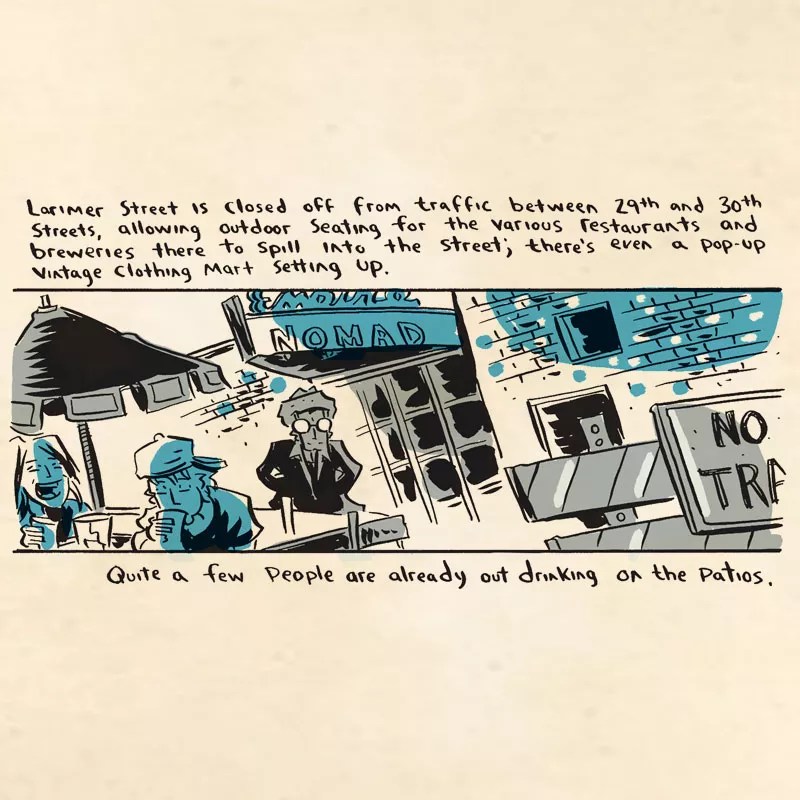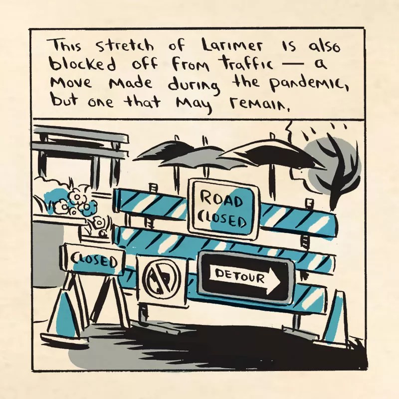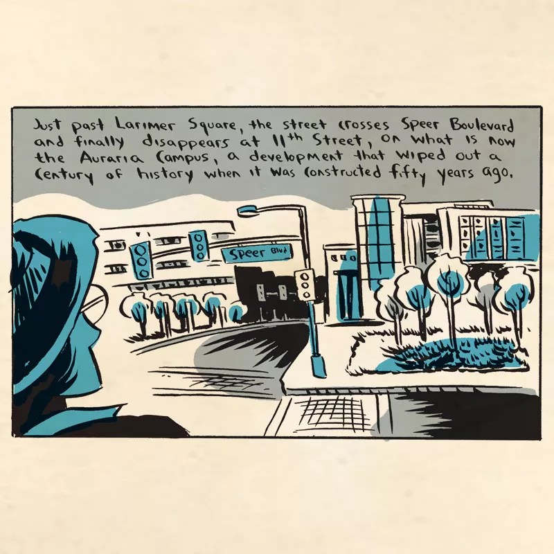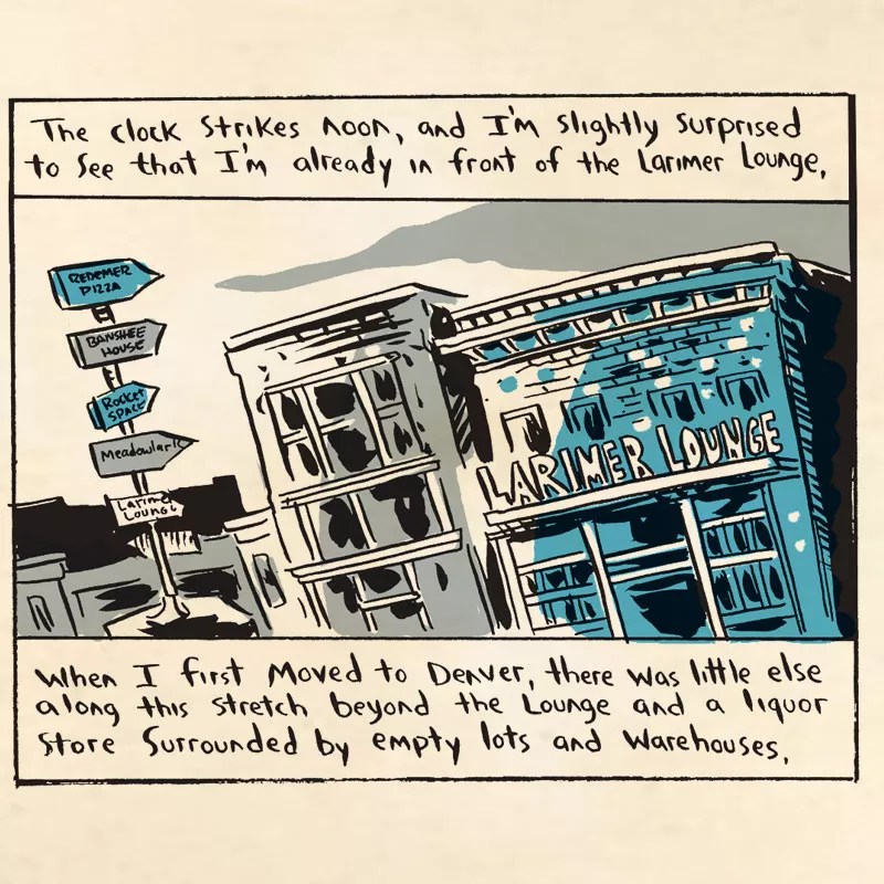 In his ongoing cartoon series capturing changing Denver, Karl Christian Krumpholz traveled from one end of Larimer to the other, where Denver began…and much of the historic city has already become history. Join him on this tour originally published in June 2022, and learn more about the protest here…