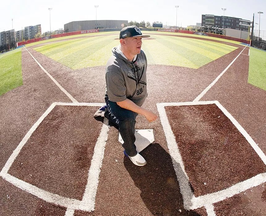 Medina’s high school baseball career and 3.8 GPA earned him a scholarship to Arapahoe Community College, where he was in the starting rotation of a newly reinstated team called ACC Coyotes (ACC’s mascot is now a puma). By now, he had molded himself into a solid left-handed starter with an 84 mph fastball and a 13 mph slower, which deceived batters and helped him get strikeouts and groundouts. He was a “bulldog” on the mound, he says, not afraid to keep pitching and face the toughest hitters in any situation.