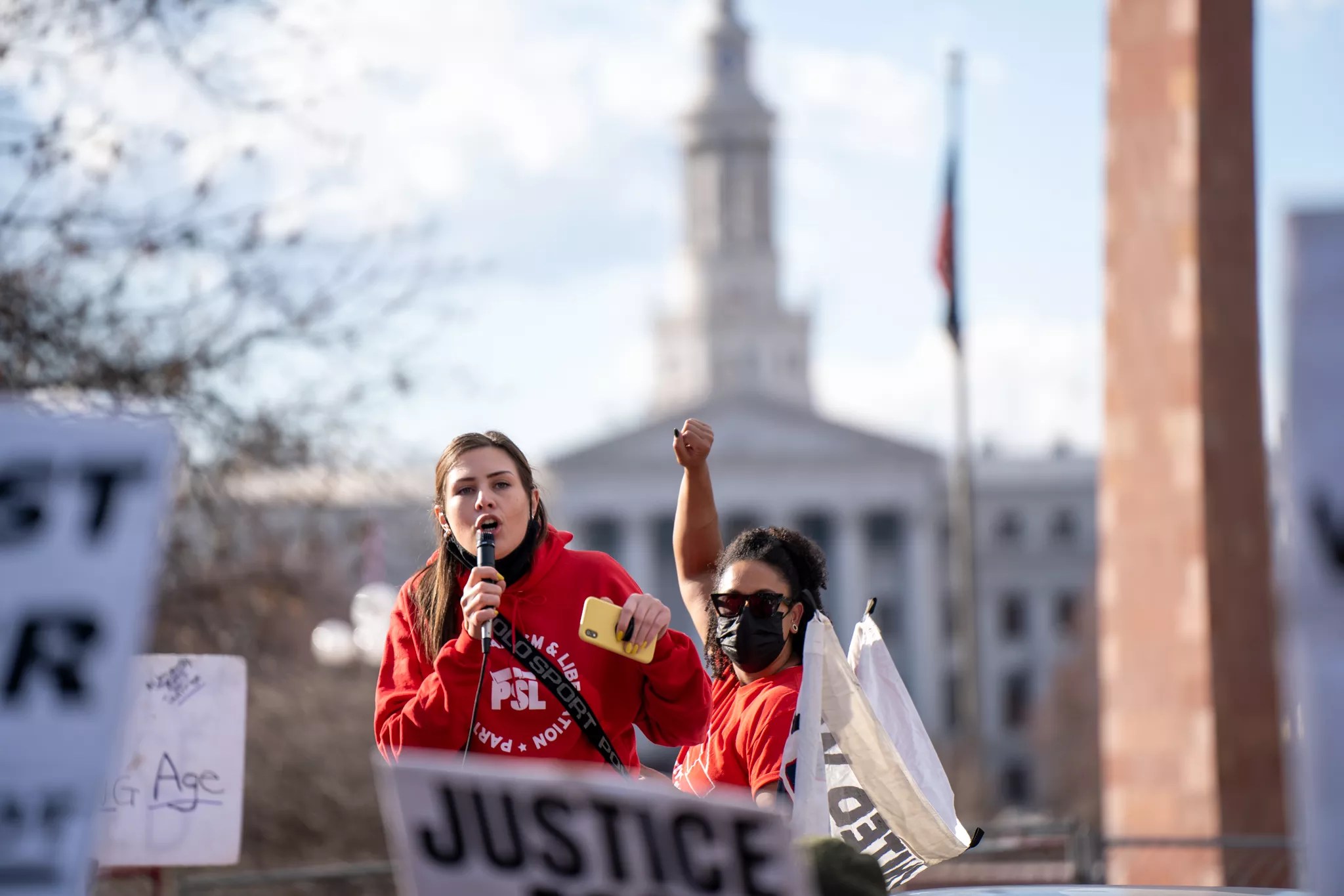 “We are here for Elijah McClain, and we aren’t going anywhere,” said Eliza Lucero, one of the leaders of the Denver branch of the Party for Socialism and Liberation, which had organized a rally to demand justice for McClain at 1 p.m. on November 21.