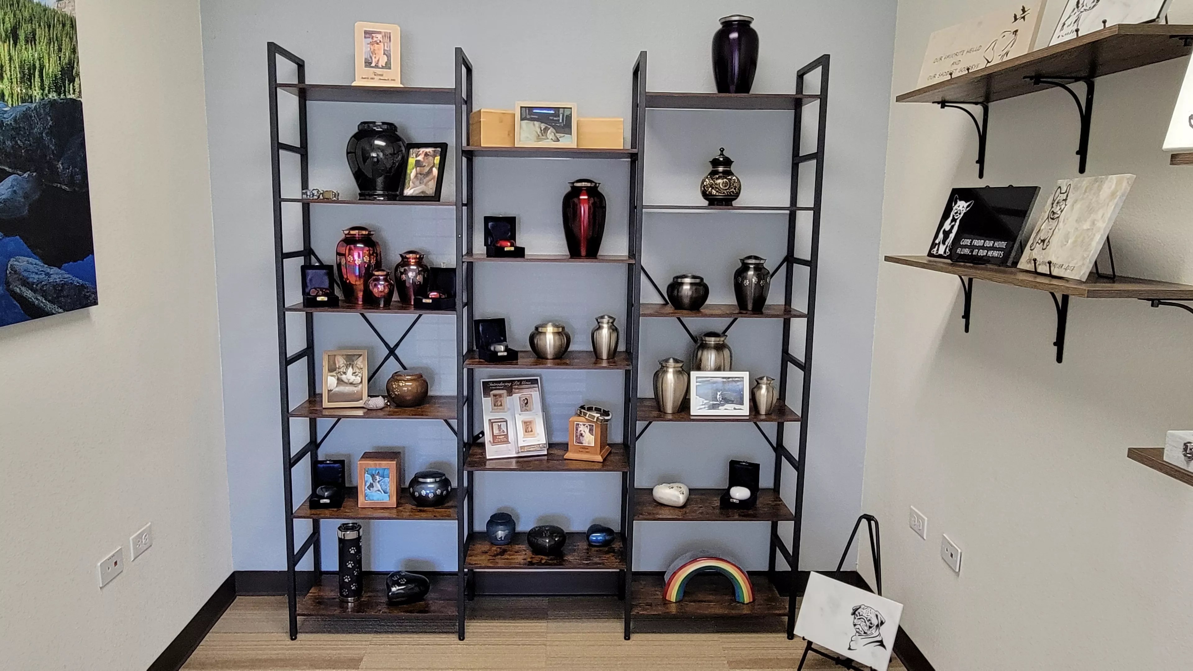 Grieving pet owners can select urns and other materials for remembering their lost loved ones.