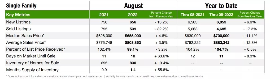 There are other major takeaways from the association’s analysis for August. For example, the median price of a single-family home in the seven-county Denver area slid for the fourth consecutive month, landing at $620,000 – and while that’s still almost 10 percent higher than the median in August 2021, it’s about $40,000 lower than April’s record-setting peak.