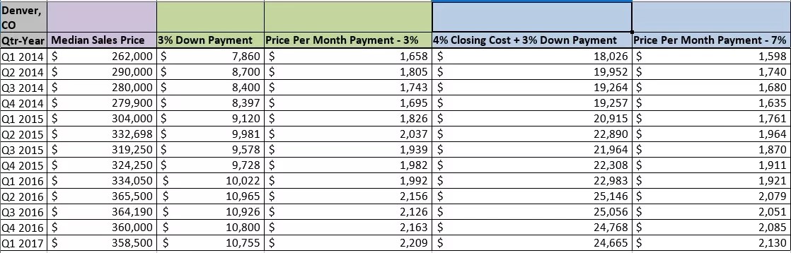 Denver down payment data, 2014-2017