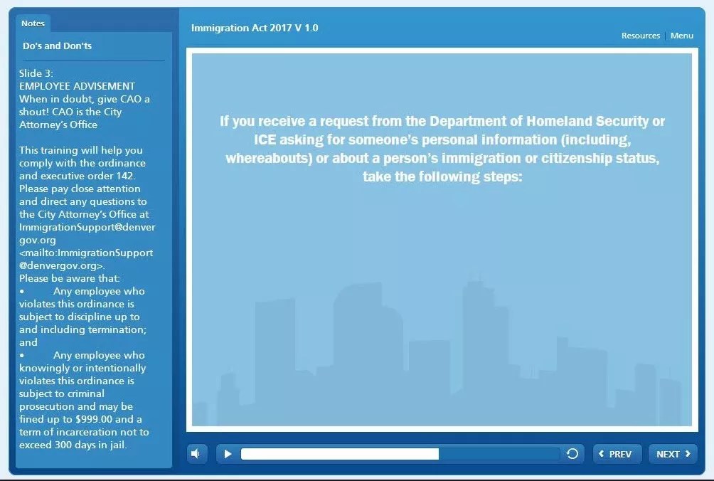 During a recent interview with Westword, former Congressman Tom Tancredo, who’s running for governor, said City of Denver employees who assist Immigration and Customs Enforcement representatives in ways that go beyond current city policy could be fined up to $1,000. Turns out he’s right, as indicated by a slide from a PowerPoint presentation sent to city employees, one of whom shared it with Tancredo. The graphic, on view below, notes that violations during interactions with ICE agents can lead to fines, jail time and even firing.