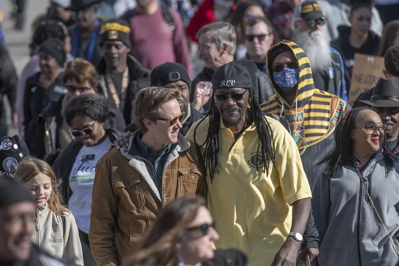 Mayoral candidate Mike Johnston (left) with Reverend Leon Kelly.