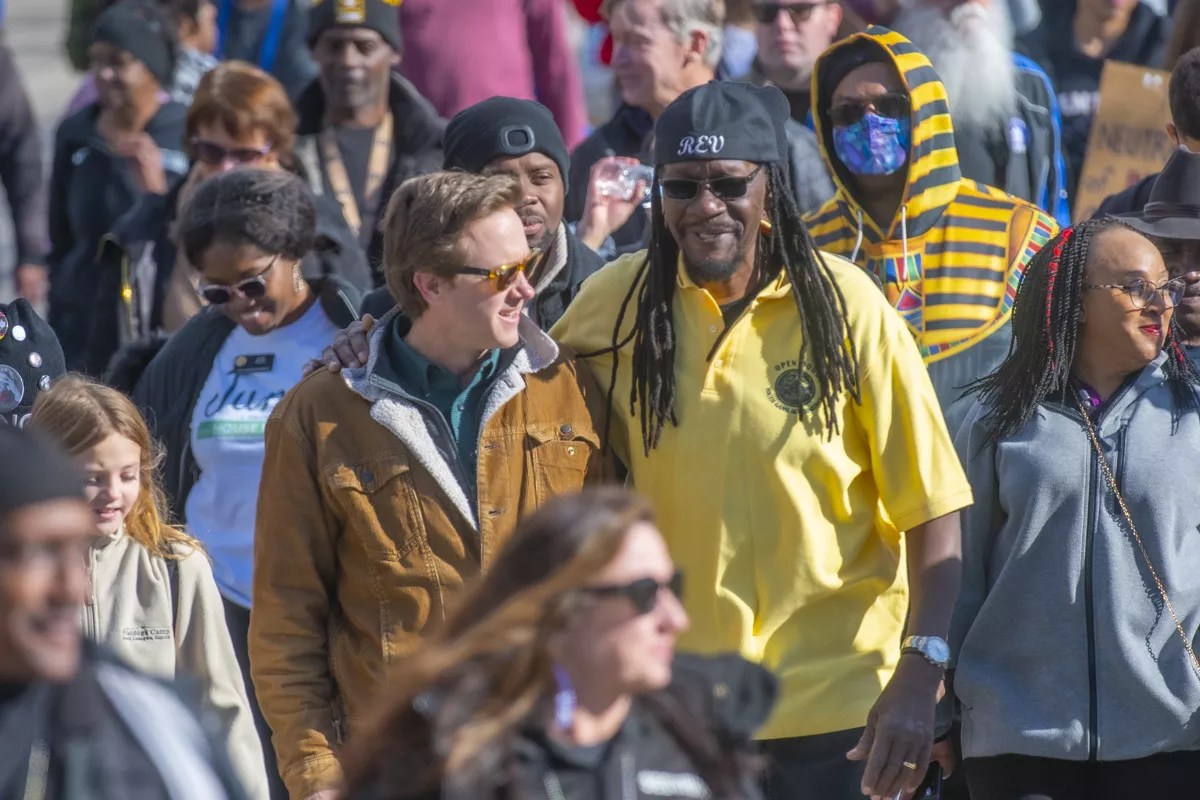 Mike Johnston with the Reverend Leon Kelly during the 2023 Marade.